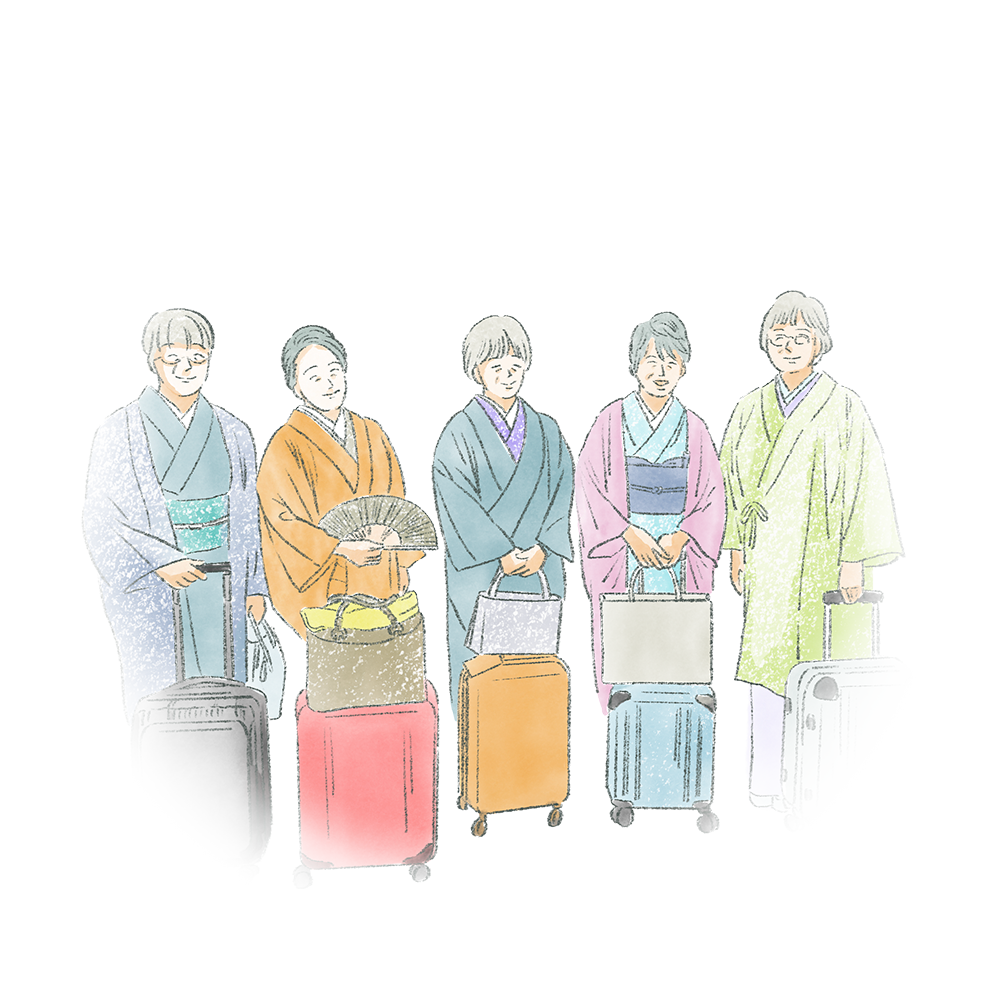 最初はいつもの身近な場所で「きものを着て外に出かける喜び」を実感。 一緒に楽しむ友人と出掛けたり、参加者全員がきもの姿のパーティーに参加してみたり、 きもの産地訪問や各地で開催されるきものファンの集いの旅に出るのも良し。 普段洋服で行く機会が、きもので行くようになる変化を楽しんでください。